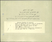 • The core of the archive is administrative and scientific files that document the work on preservation and exploration of archaeological sites and historical monuments. The scientific record files (SRF) and administrative files (ATQ) are organized by site/monument name, while the catalogue preserves the original British transcription of the Arabic place names.