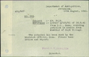 Once you designate your search filters, you will receive the results as a list of files. Every result consists of the file's title, its attribution as an SRF or ATQ file and its ID number. Often the titles of the files will not correspond exactly to the site name you searched for. This is because different names were used for the same site or because some files contain information about several sites. Once you click onto one of the results you will see the texts, photos and all other components of the file. The title page of the file always appears first. The title pages of ATQ files sometimes show the dates of the material inside the file, but this is not always accurate. Sometimes you may see on the title page references to other ATQ files that deal with the same sites or subjects. You can use the "Search by ATQ Number" option to search for these files. The title pages of SRF files show the name of the site, the district it belongs to, its coordinates, how it was reached, sources of drinking water, pottery periods from the site, and often the number of the ATQ file number related to the site. You can use the ATQ number to search for this file using the "Search by ATQ number" option.