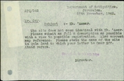 Each file in the scientific archives of the Mandate period is either an Administrative file (ATQ) or a Scientific Record File (SRF). Every site that was known during this period has a record in an SRF file, and might have one or more ATQ files. If you know the ID number of the SRF or ATQ file you are looking for, just type it into the search box.
