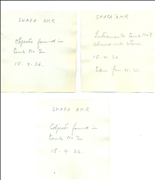 Once you designate your search filters, you will receive the results as a list of files. Every result consists of the file's title, its attribution as an SRF or ATQ file and its ID number. Often the titles of the files will not correspond exactly to the site name you searched for. This is because different names were used for the same site or because some files contain information about several sites. Once you click onto one of the results you will see the texts, photos and all other components of the file. The title page of the file always appears first. The title pages of ATQ files sometimes show the dates of the material inside the file, but this is not always accurate. Sometimes you may see on the title page references to other ATQ files that deal with the same sites or subjects. You can use the "Search by ATQ Number" option to search for these files. The title pages of SRF files show the name of the site, the district it belongs to, its coordinates, how it was reached, sources of drinking water, pottery periods from the site, and often the number of the ATQ file number related to the site. You can use the ATQ number to search for this file using the "Search by ATQ number" option.