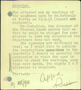 Once you designate your search filters, you will receive the results as a list of files. Every result consists of the file's title, its attribution as an SRF or ATQ file and its ID number. Often the titles of the files will not correspond exactly to the site name you searched for. This is because different names were used for the same site or because some files contain information about several sites. Once you click onto one of the results you will see the texts, photos and all other components of the file. The title page of the file always appears first. The title pages of ATQ files sometimes show the dates of the material inside the file, but this is not always accurate. Sometimes you may see on the title page references to other ATQ files that deal with the same sites or subjects. You can use the "Search by ATQ Number" option to search for these files. The title pages of SRF files show the name of the site, the district it belongs to, its coordinates, how it was reached, sources of drinking water, pottery periods from the site, and often the number of the ATQ file number related to the site. You can use the ATQ number to search for this file using the "Search by ATQ number" option.