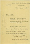 The Pro-Jerusalem Society Files: the Pro-Jerusalem society was established in 1918 in Jerusalem. The goal of the society was the protection of and addition to “the amenities of Jerusalem and its vicinity,” including preservation of antiquities and the establishment of museums. The society was active between 1918 and 1922.