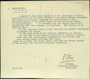• Administrative archive of the Palestine Archaeological Museum (today: Rockefeller Museum) and the Department of Antiquities (on topics not directly related to antiquities).
