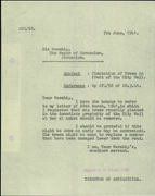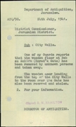 The Pro-Jerusalem Society Files: the Pro-Jerusalem society was established in 1918 in Jerusalem. The goal of the society was the protection of and addition to “the amenities of Jerusalem and its vicinity,” including preservation of antiquities and the establishment of museums. The society was active between 1918 and 1922.
