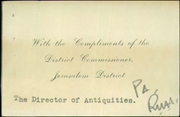 • Administrative archive of the Palestine Archaeological Museum (today: Rockefeller Museum) and the Department of Antiquities (on topics not directly related to antiquities).