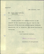 • Administrative archive of the Palestine Archaeological Museum (today: Rockefeller Museum) and the Department of Antiquities (on topics not directly related to antiquities).