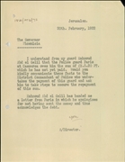 The Pro-Jerusalem Society Files: the Pro-Jerusalem society was established in 1918 in Jerusalem. The goal of the society was the protection of and addition to “the amenities of Jerusalem and its vicinity,” including preservation of antiquities and the establishment of museums. The society was active between 1918 and 1922.