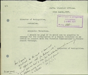 • Administrative archive of the Palestine Archaeological Museum (today: Rockefeller Museum) and the Department of Antiquities (on topics not directly related to antiquities).