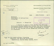 • Administrative archive of the Palestine Archaeological Museum (today: Rockefeller Museum) and the Department of Antiquities (on topics not directly related to antiquities).