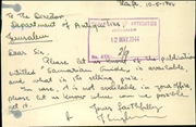 • Administrative archive of the Palestine Archaeological Museum (today: Rockefeller Museum) and the Department of Antiquities (on topics not directly related to antiquities).