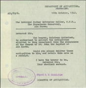 • Administrative archive of the Palestine Archaeological Museum (today: Rockefeller Museum) and the Department of Antiquities (on topics not directly related to antiquities).