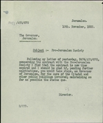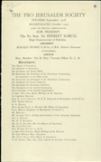 The Pro-Jerusalem Society Files: the Pro-Jerusalem society was established in 1918 in Jerusalem. The goal of the society was the protection of and addition to “the amenities of Jerusalem and its vicinity,” including preservation of antiquities and the establishment of museums. The society was active between 1918 and 1922.