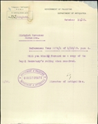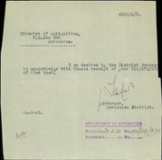 • Administrative archive of the Palestine Archaeological Museum (today: Rockefeller Museum) and the Department of Antiquities (on topics not directly related to antiquities).